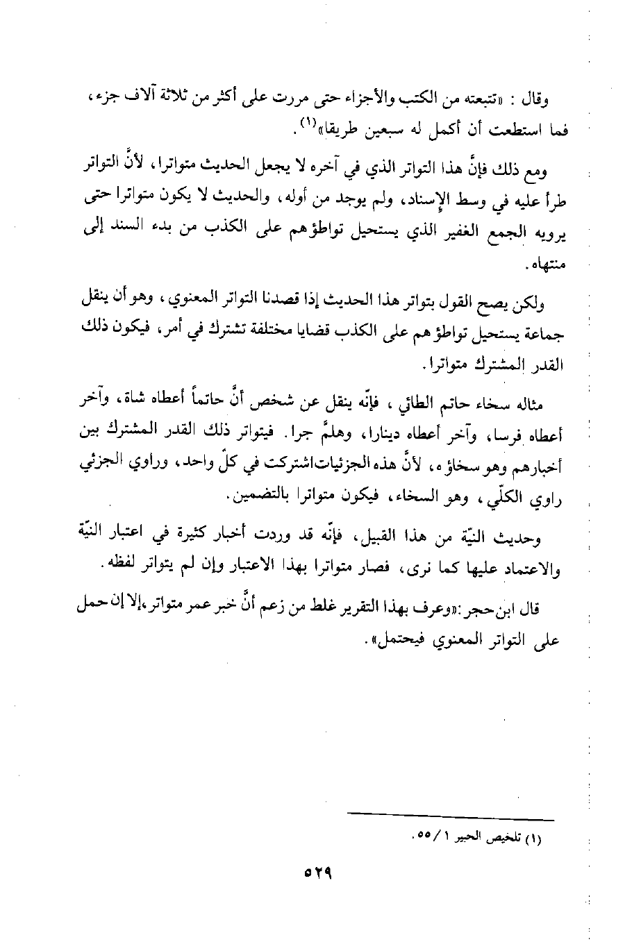 قال ابن حجر: "وعرف بهذا التقرير غلط من زعم أنَّ خبر عمر متواتر، إلا إن حمل على التواتر المعنوي فيحتمل".