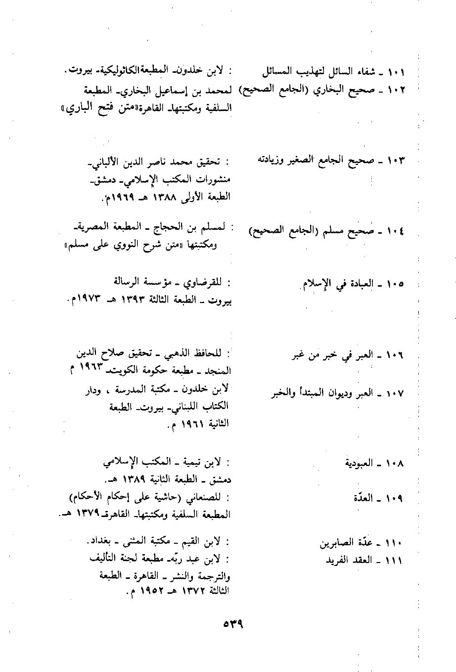 105 - العبادة في الإسلام: للقرضاوي - مؤسسة الرسالة - بيروت - الطبعة الثالثة 1393 هـ 1973 م.