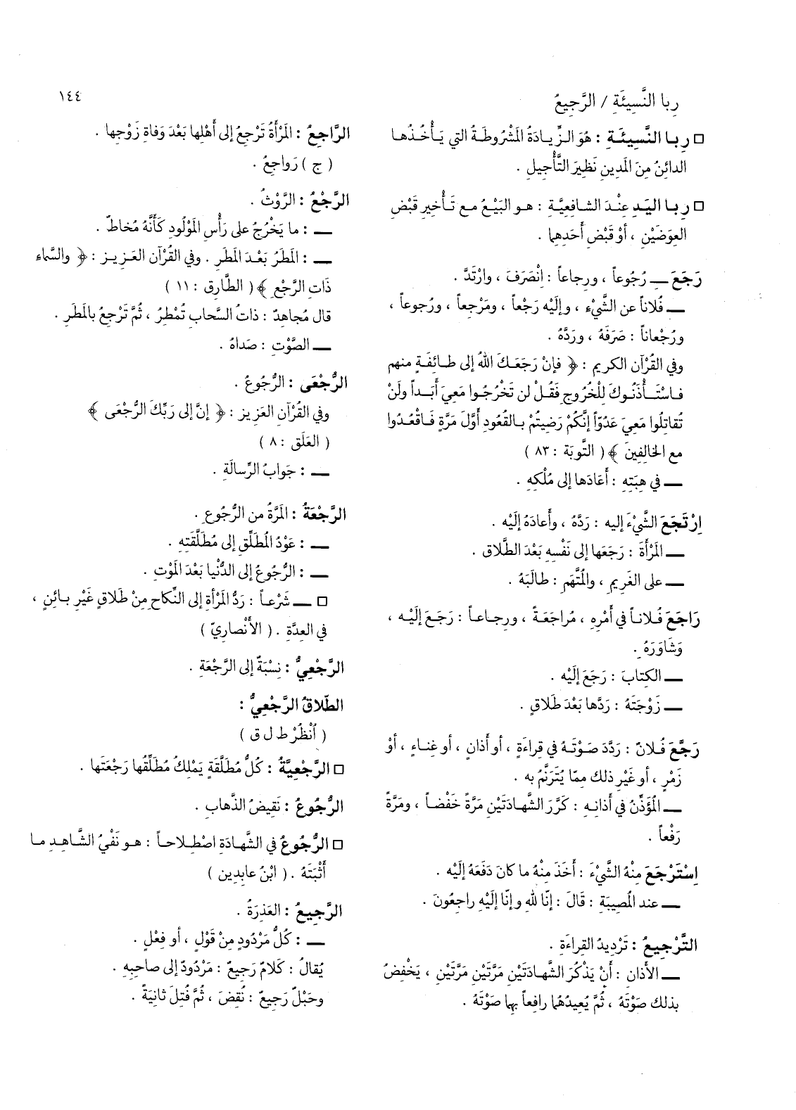 - فلانا عن الشئ، وإليه رجعا، ومرجعا، ورجوعا، ورجعانا: صرفه، ورده.