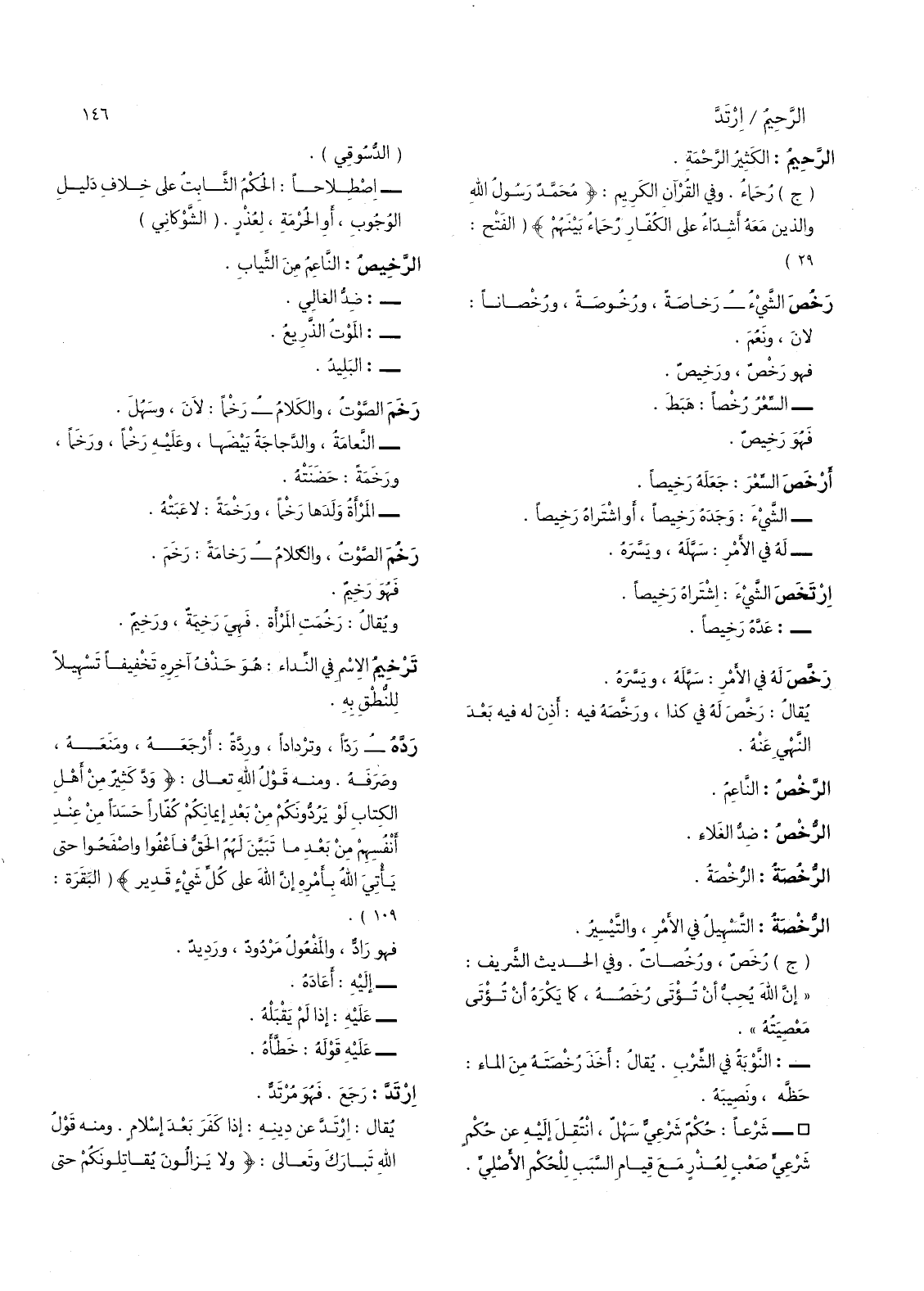 وفي القرآن الكريم: (محمد رسول الله والين معه أشداء على الكفار رحماء بينهم) (الفتح: 29) رخص الشئ) رخاصة، ورخوصة، ورخصانا: لان ونعم.