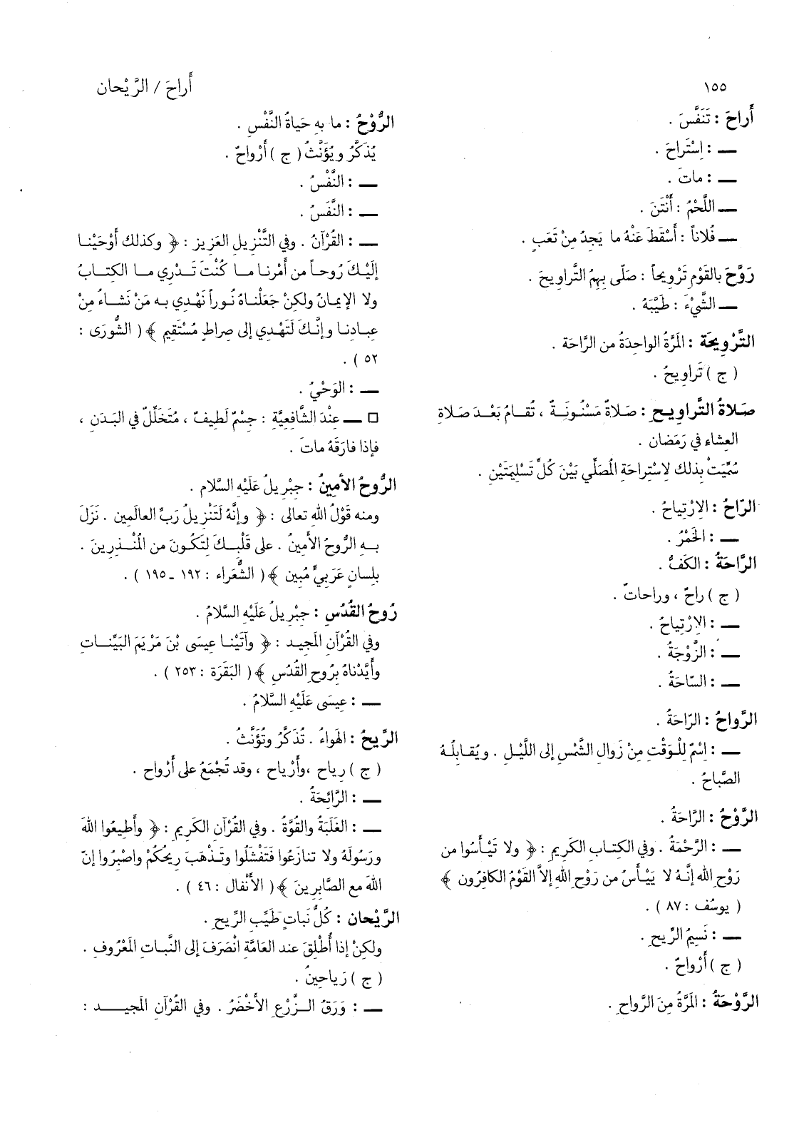 -: الرحمة، وفي الكتاب الكريم: (ولا تيأسوا من روح الله إنه لا ييأس من روح الله إلا القوم الكافرون) (يوسف: 87) -: نسيم الريح.