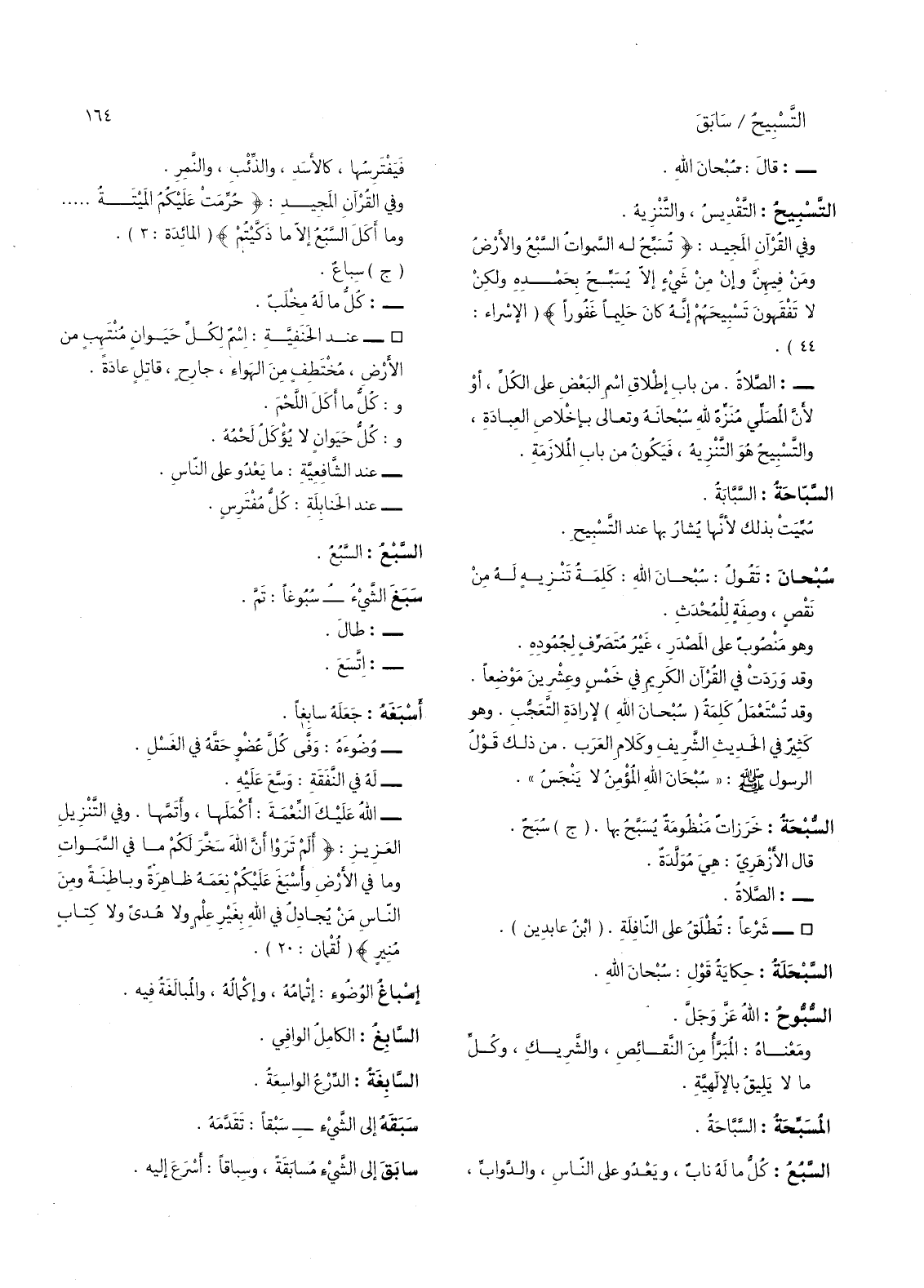 وفي القران المجيد: (حرمت عليكم الميتة ... وما أكل السبع إلا ما ذكيتم) (المائدة: 3) (ج) سباع.