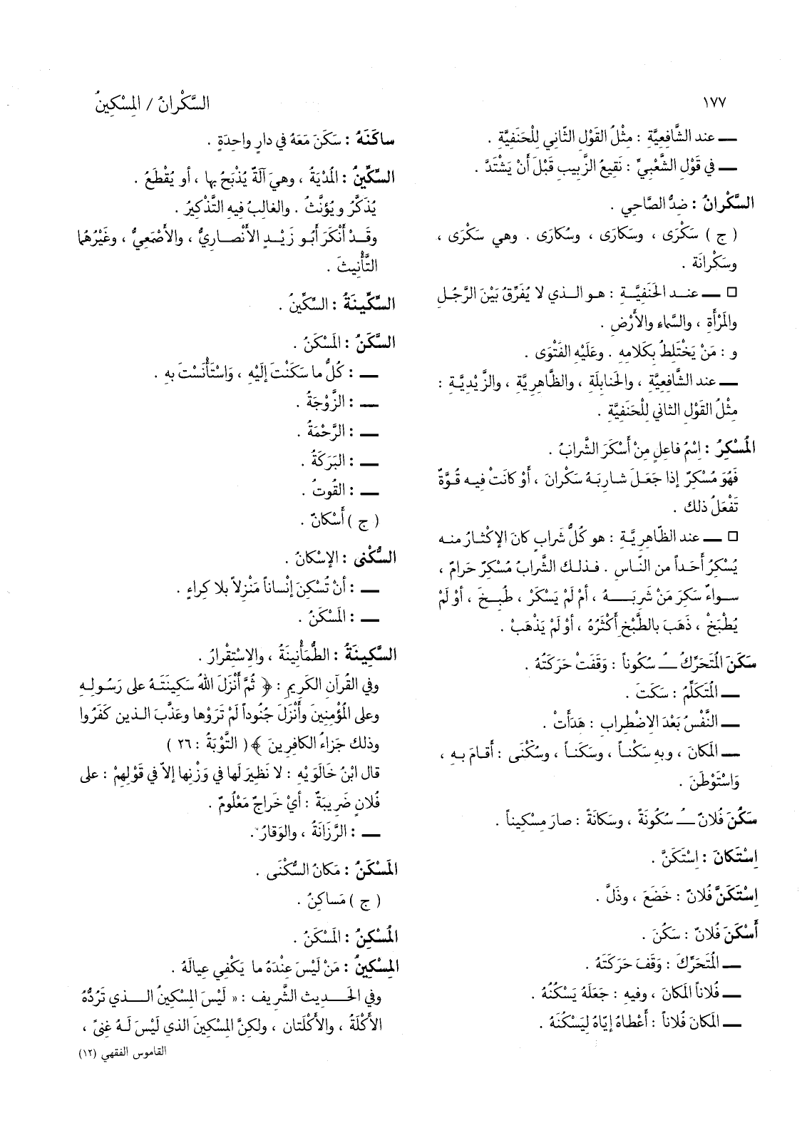 سكن فلان - سكونة، وسكانة: صار مسكينا.