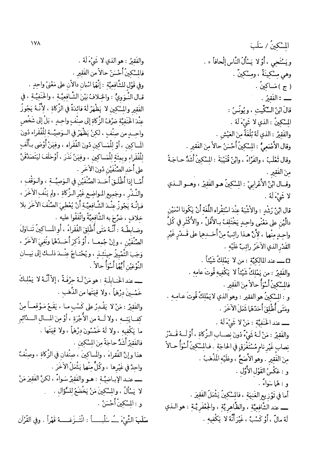 والحنفية، في الفقير والمسكين لا يظهر له فائدة في الزكاة، لانه يجوز عند الحنفية صرف الزكاة إلى صنف واحد.