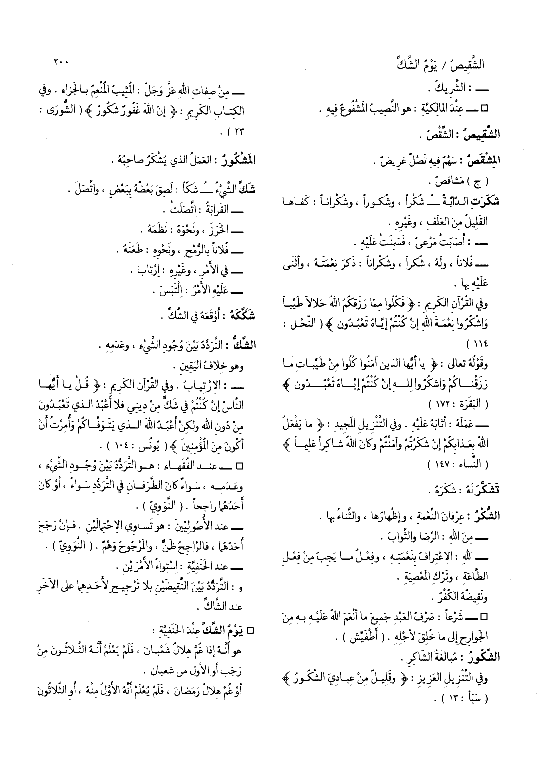 وفي القرآن الكريم: (قل يا أيها الناس إن كنتم في شك من ديني فلا أعبد الذي تعبدون من دون الله ولكن أعبد الله الذي يتوفاكم وأمرت أن أكون من المؤمنين) (يونس: 104) - عند الفقهاء: هو التردد بين وجود الشئ.