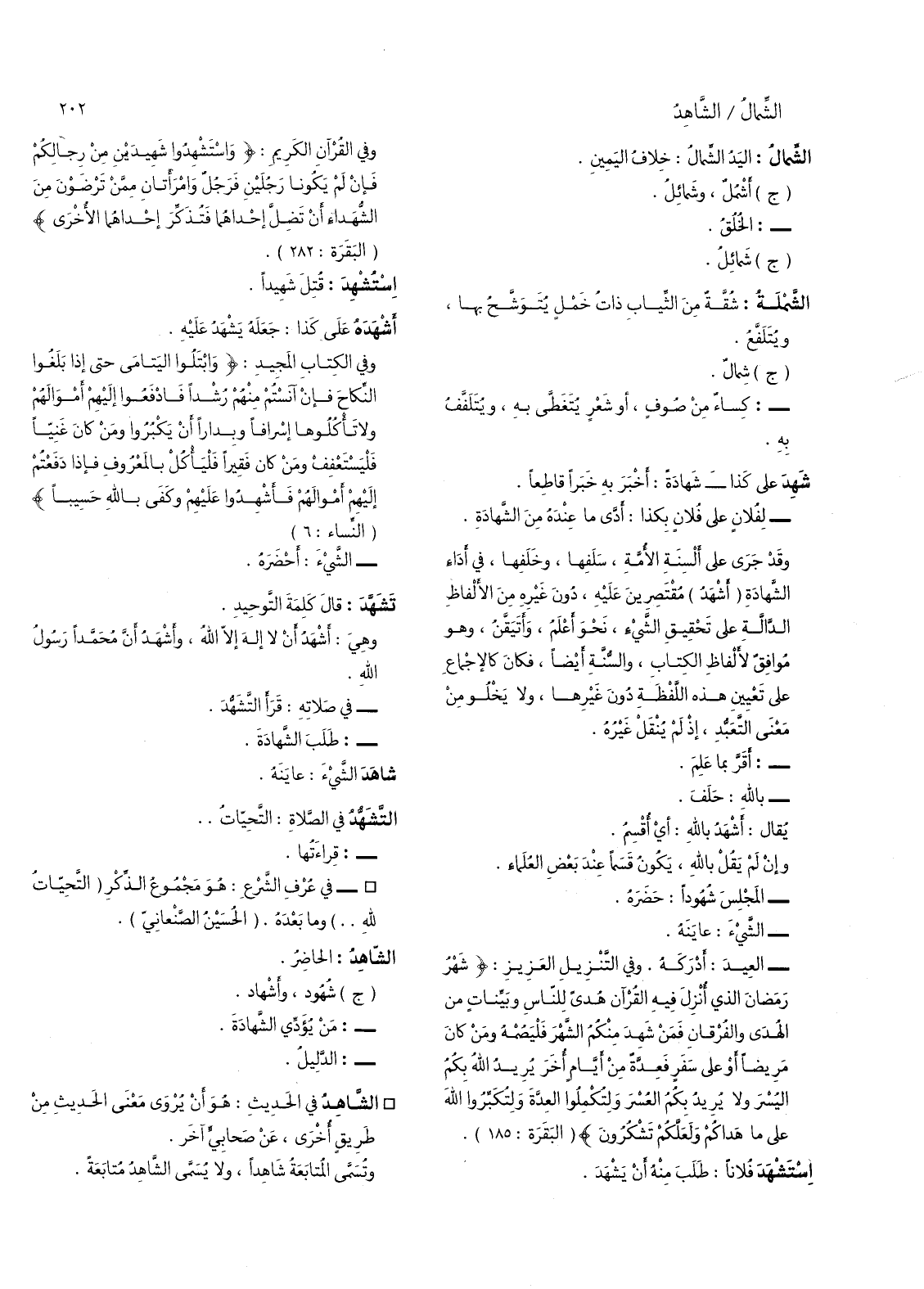 - العيد: أدركه، وفي التنزيل العزيز: (شهر رمضان الذي أنزل فيه القرآن هدى للناس وبينات من الهدى والفرقان فمن شهد منكم الشهر فليصمه ومن كان مريضا أو على سفر فعدة من أيام أخر يريد الله بكم اليسر ولا يريد بكم العسر ولتكملوا العدة لو تكبروا الله على ما هداكم ولعلكم تشكرون) (البقرة: 185) استشهد فلانا: طلب منه أن يشهد.