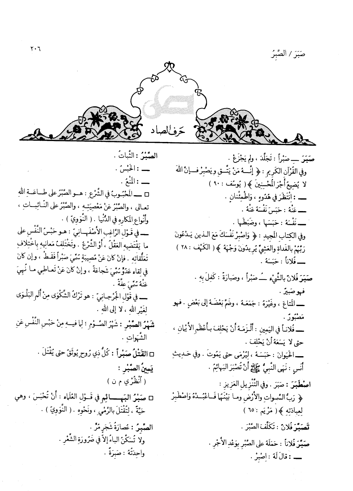 - في قول الراغب الاصفهاني: هو حبس النفس على ما يقتضيه العقل، أو الشرع، وتختلف معانيه باختلاف تعلقاته.