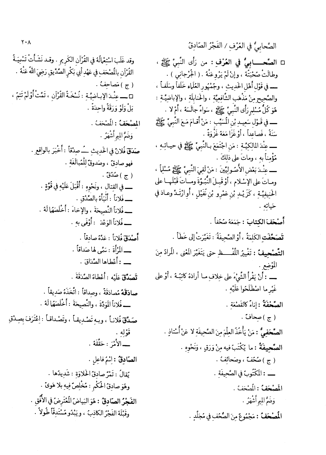 - عند بعض الاصوليين: من لقي النبي صلى الله عليه وسلم مسلما، ومات على الاسلام، أو قبل النبوة ومات قبلها على الحنفية، كزيد بن عمرو بن نفيل، أو ارتد وعاد في حياته.
