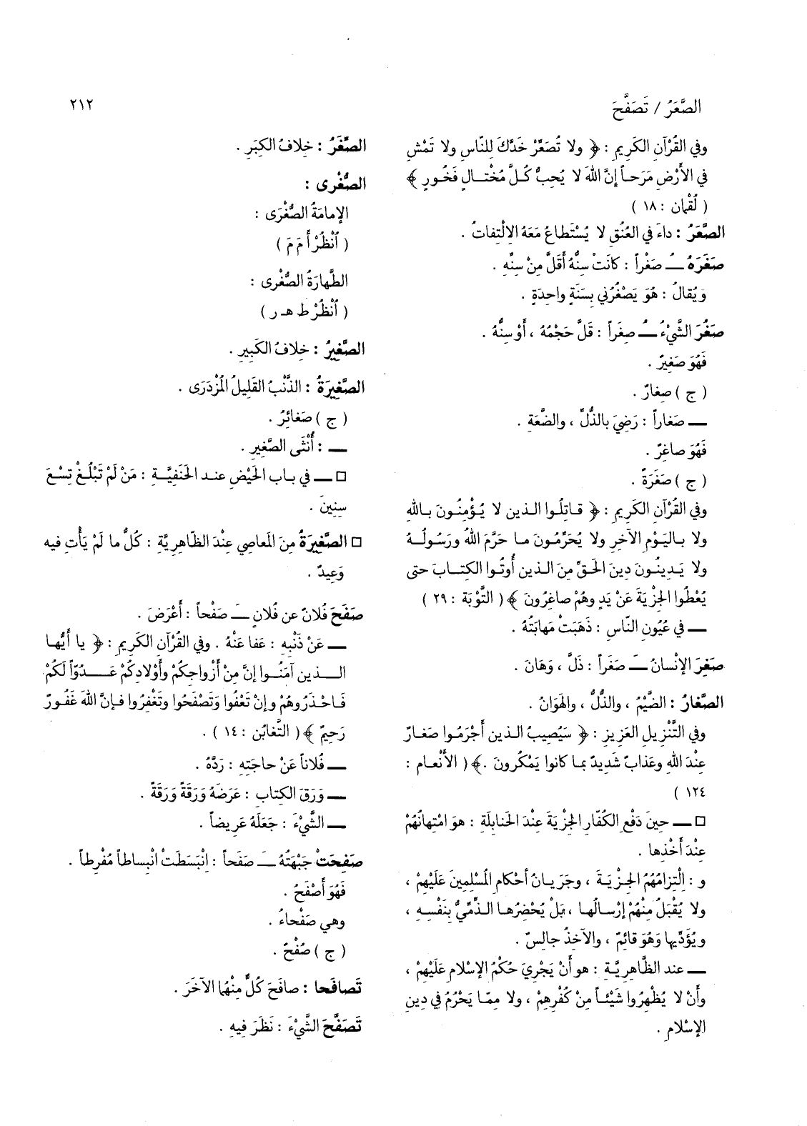 الامام الصغرى: (انظر أم م) الطهارة الصغرى: (انظر ط هـ ر) الصغير: خلاف الكبير.