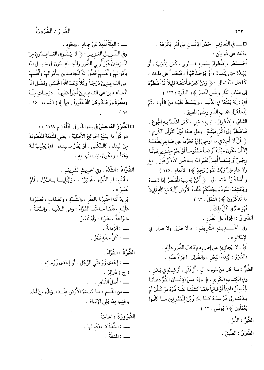 درجات منه ومغفرة ورحمة وكان الله غفورا رحيما) (النساء: 95 - 96) الضرر الفاحش في بناء الجار في المجلة (م 1199) : هو كل ما يمنع الحوائج الاصلية.
