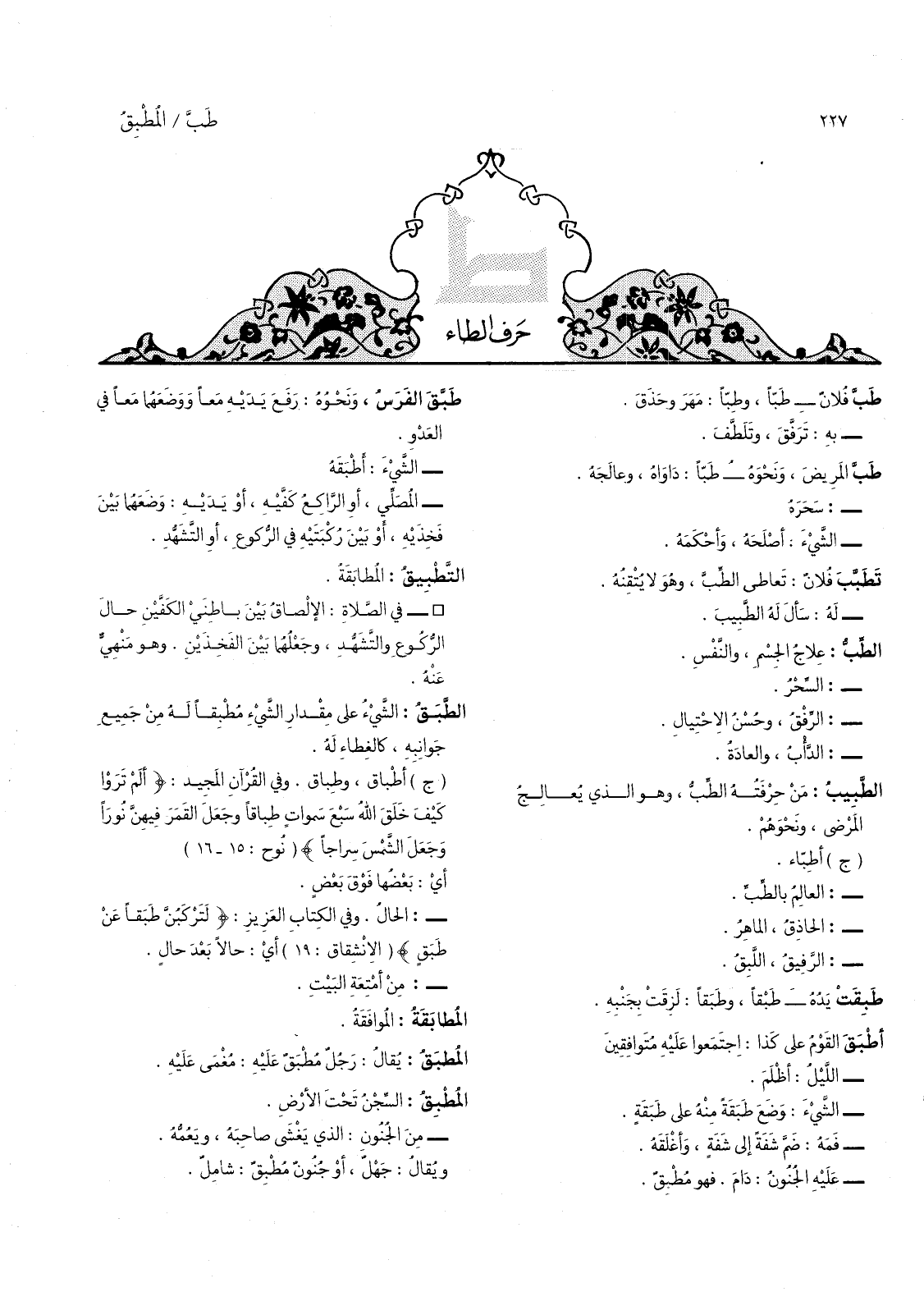 حرف الطاء طب فلان - طبا، وطبا: مهر وحذق.