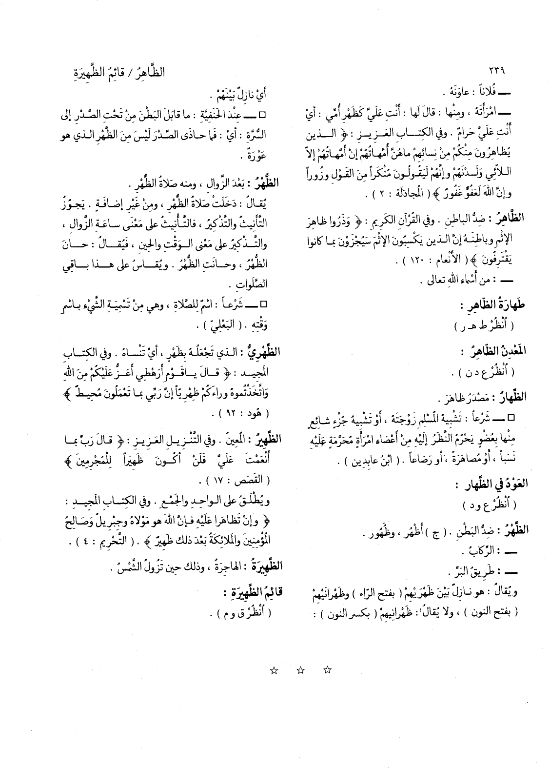 (ابن عابدين) العود في الظهار: (انظر ع ود) الظهر: ضد ابطن.