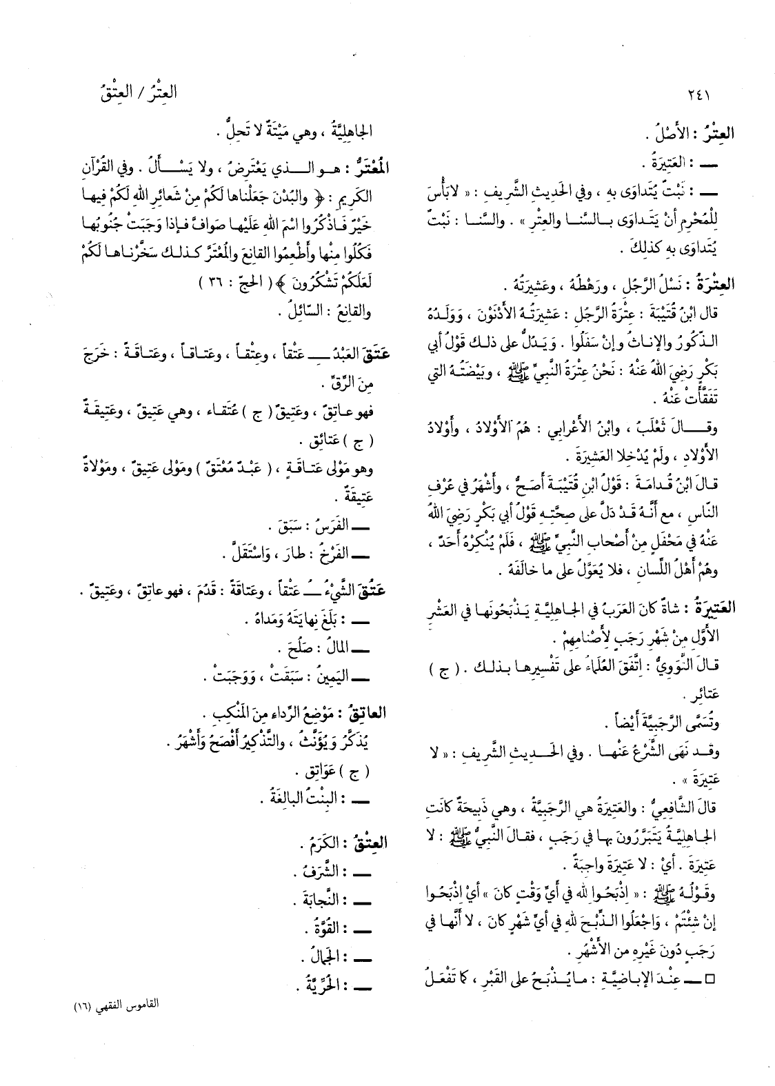 العتيرة: شاة كان العرب في الجاهلية يذبحونها في العشر الاول من شهر رجب لاصنامهم.