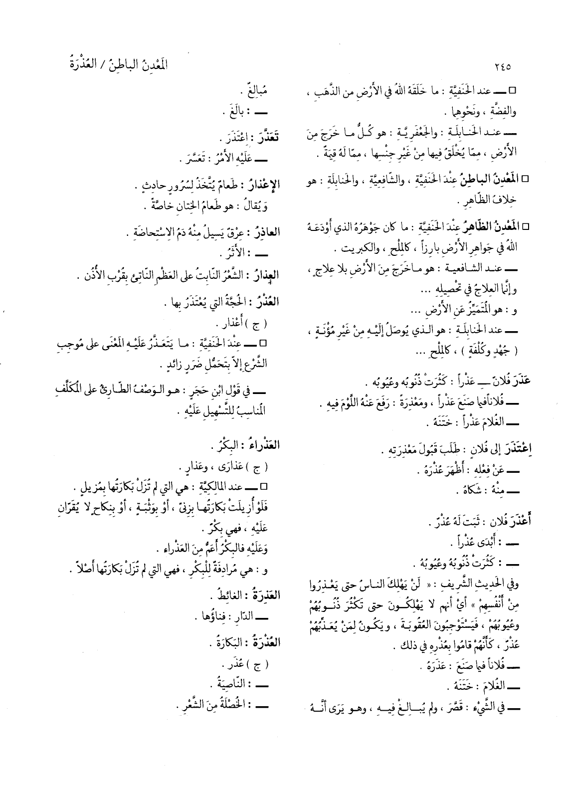 المعدن الظاهر عند الحنفية: ما كان جوهرة الذي أودعه الله في جواهر الارض بارزا، كالملح، والكبريت.