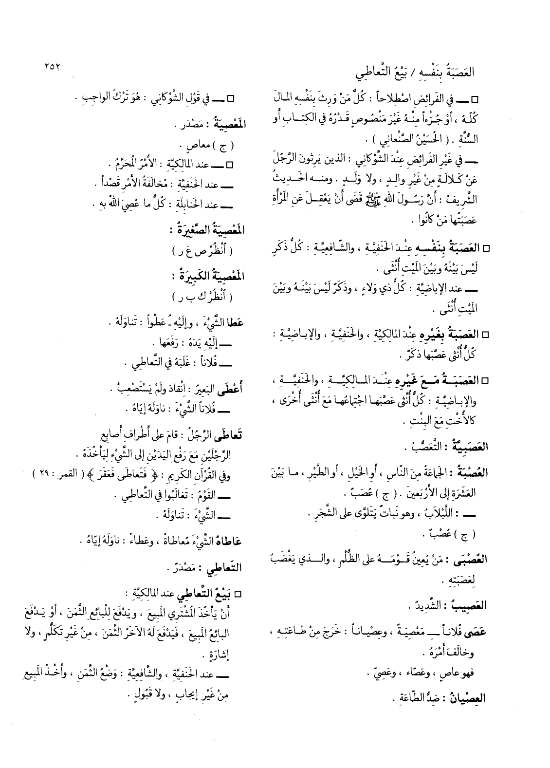 المعصية الكبيرة: (انظر ك ب ر) عطا الشئ، وإليه - عطوا: تناوله.