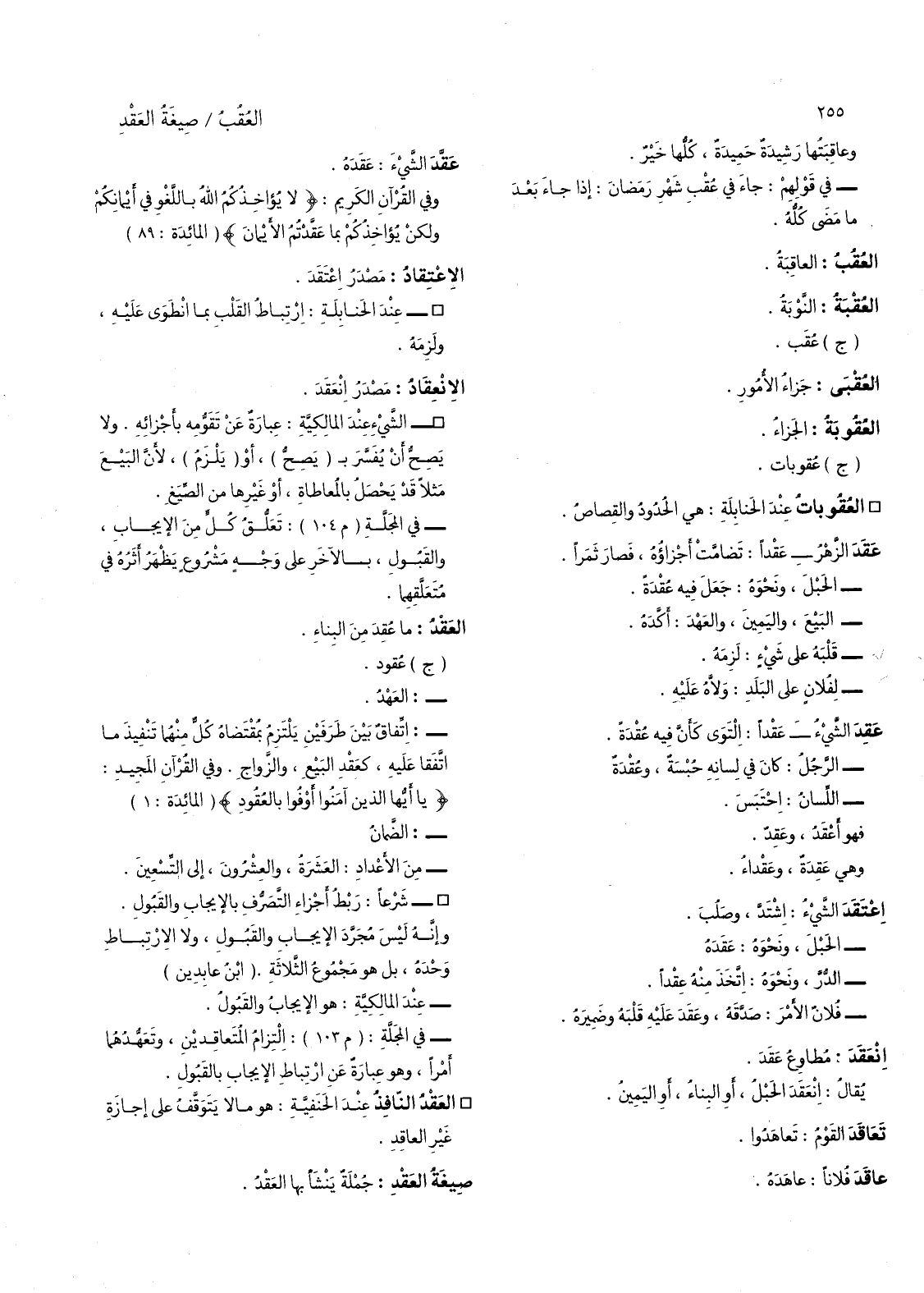 وفي القرآن المجيد: (يا أيها الذين آمنوا أوفوا بالعقود) (المائدة: 1) -: الضمان.