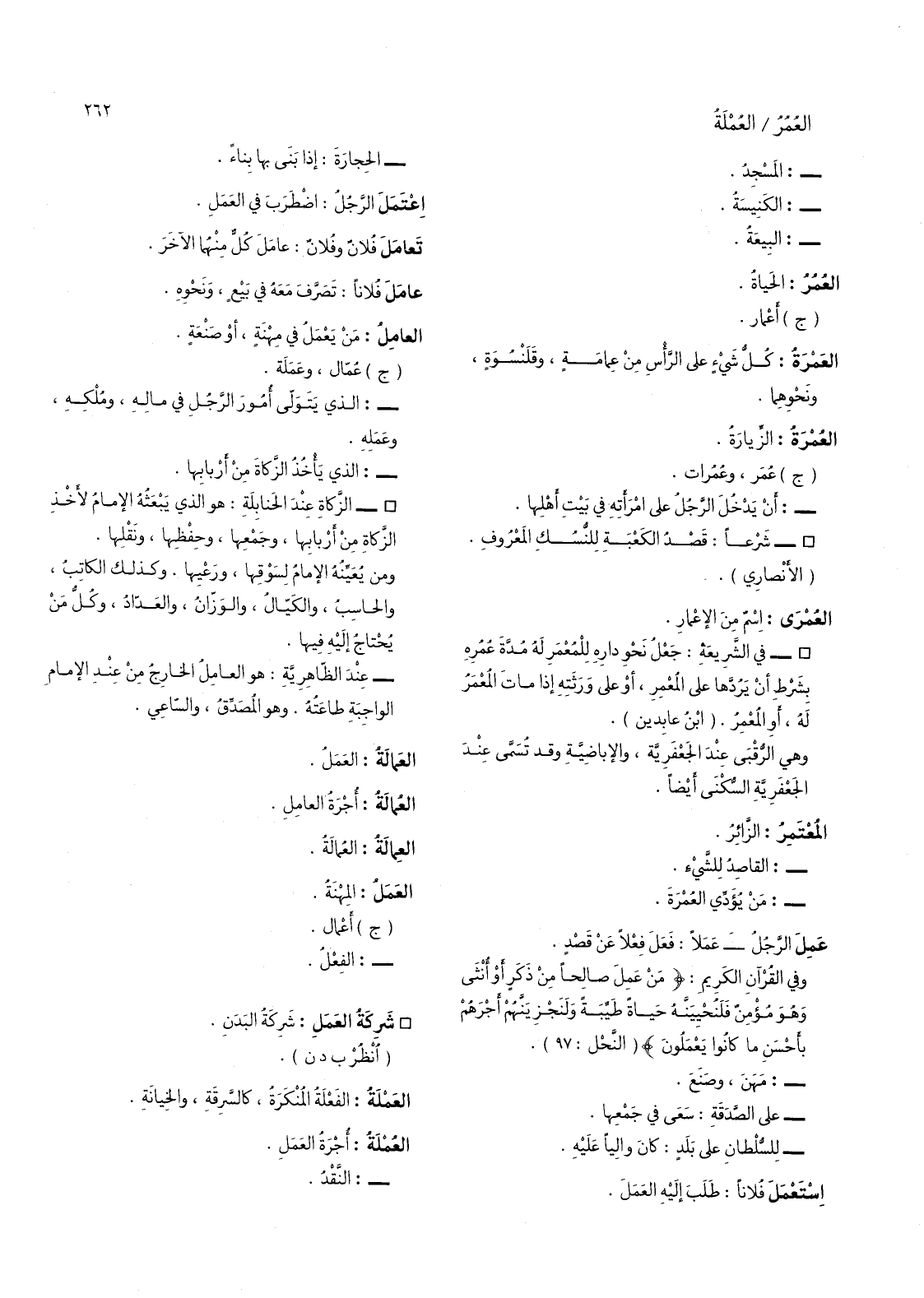 وفي القرآن الكريم: (من عمل صالحا من ذكر أو أنثى وهو مؤمن قلنحيينه حياة طيبة ولنجزينهم أجرهم بأحسن ما كانوا يعملون) (النحل: 97) -: منهن، وصنع.