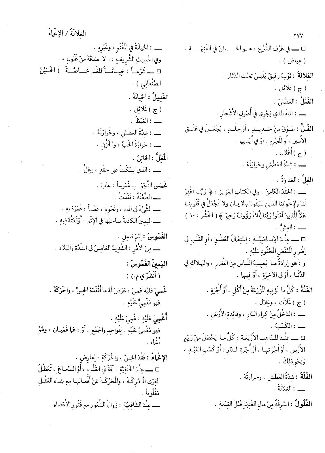 الغلول: السرقة من مال الغنيمة قبل القسمة.