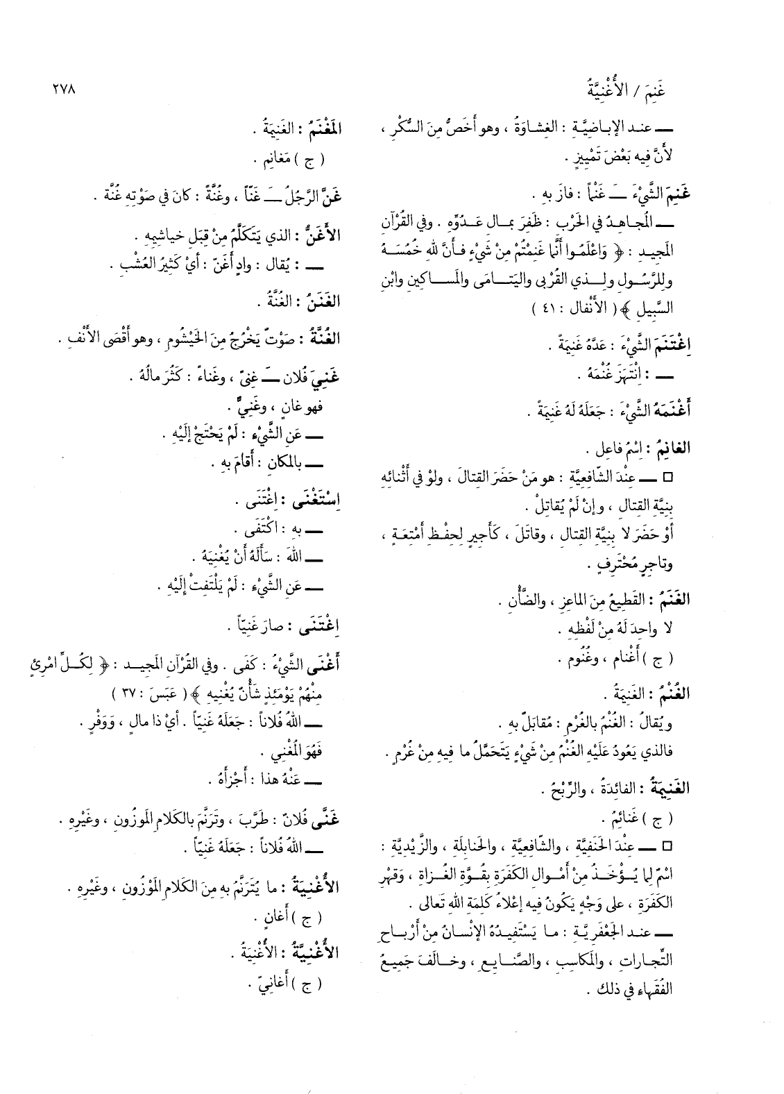 والحنابلة، والزيدية: اسم لما يؤخذ من أموال الكفرة بقوة الغزاة، وقهر الكفرة، على وجه يكون فيه إعلاء كلمة الله تعالى.