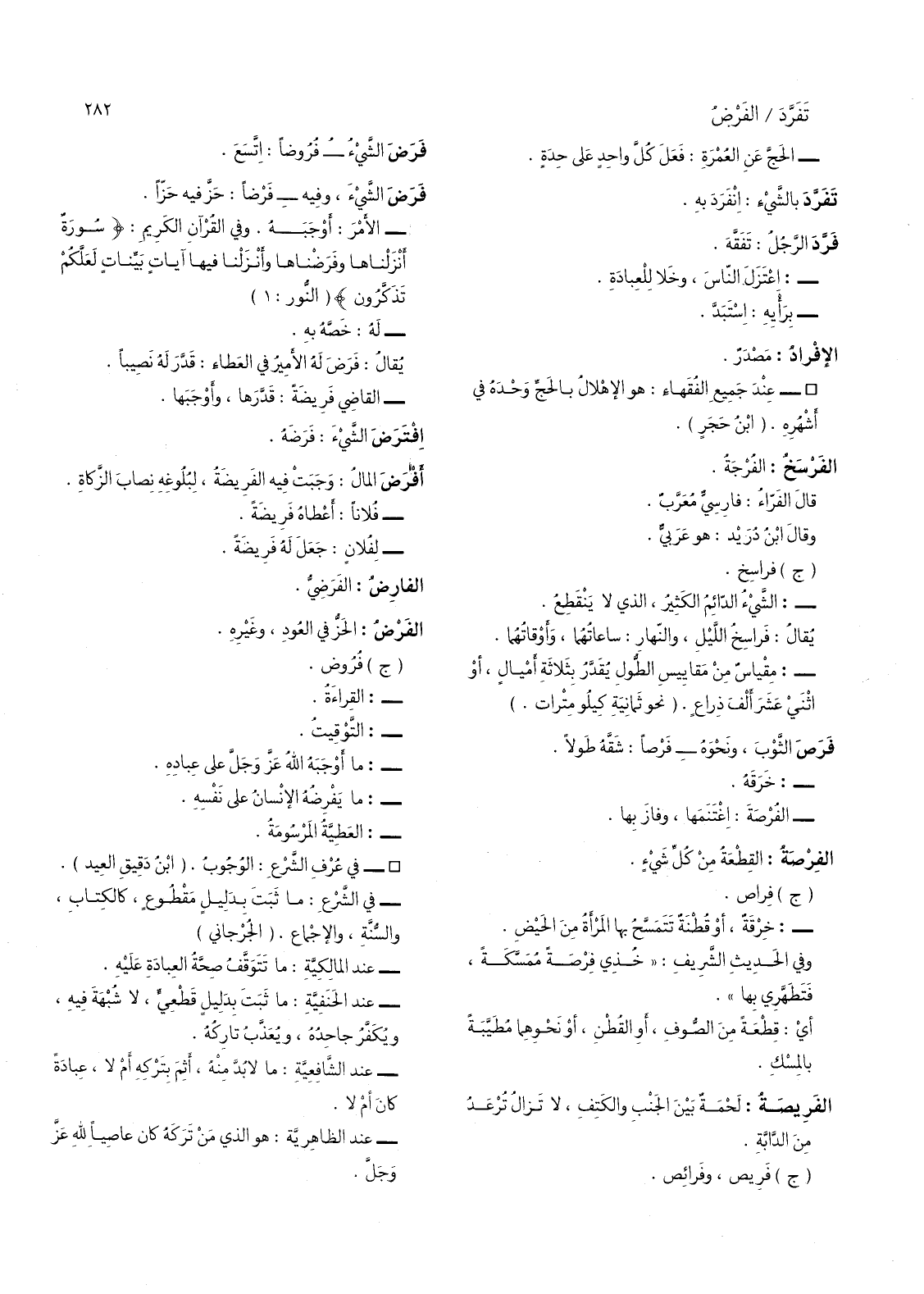 - في الشرع: ما ثبت بدليل مقطوع، كالكتاب، والسنة، والاجماع، (الجرجاني) .