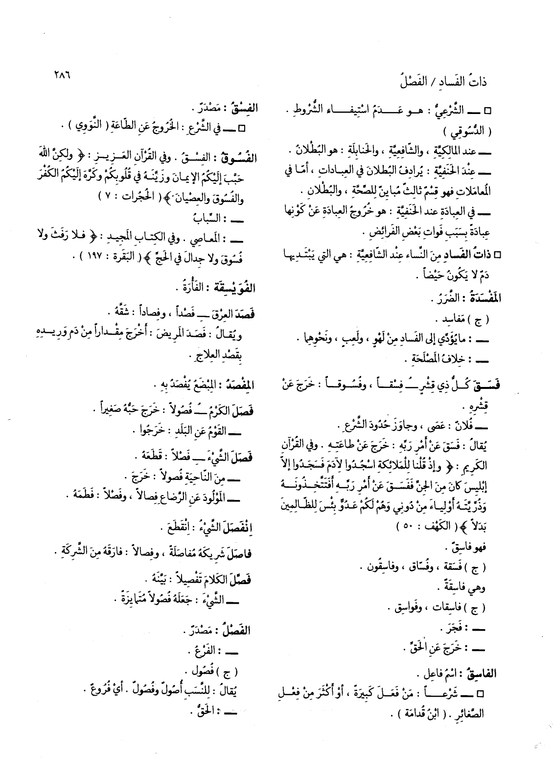 وفي الكتاب المجيد: (فلا رفث ولا فسوق ولا جدال في الحج) (البقرة: 197) الفويسقة: الفأرة.