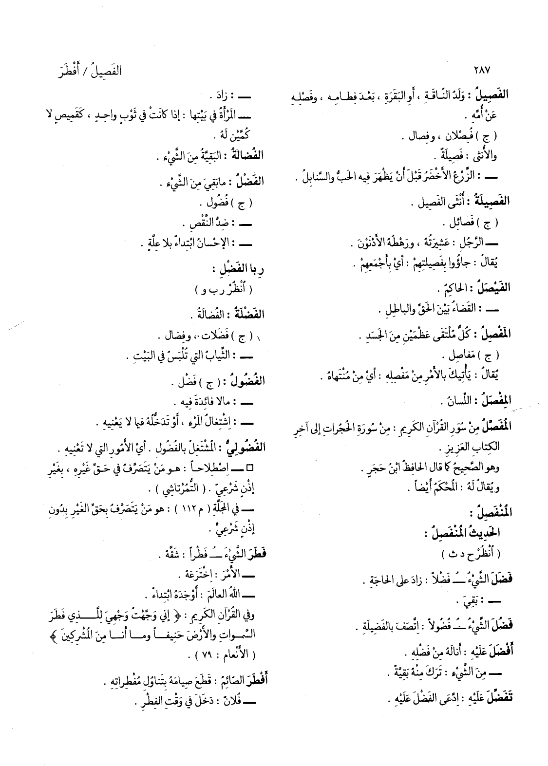 المنفصل: الحديث المنفصل: (انظر ح دث) فضل الشئ - فضلا: زاد على الحاجة.
