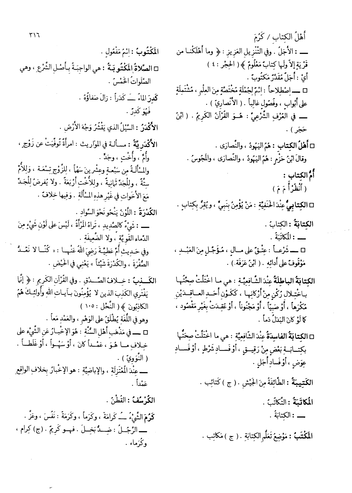 أم الكتاب: (انظر أم م) الكتابي عند الحنفية: من يؤمن بنبي، ويقر بكتاب.