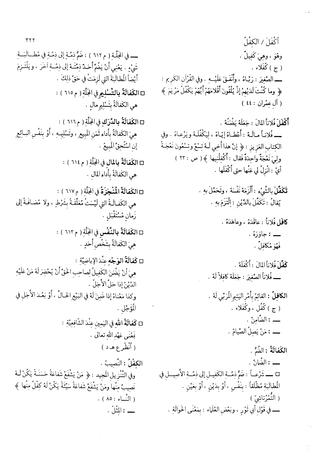 الكفالة بالمال في المجلة (م 614) : هي الكفارة بأداء المال.