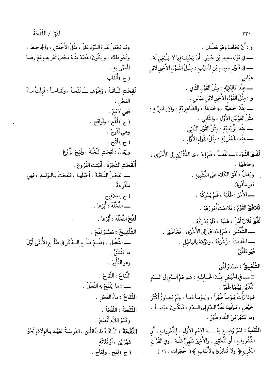 لفق الثوب - لفقا: ضم إحدى الشقتين إلى الاخرى.