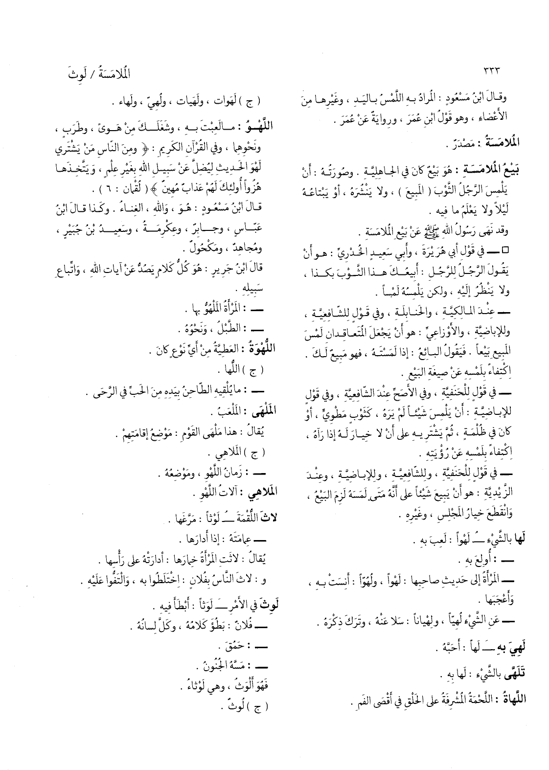 - في قول أبي هريرة، وأبي سعيد الخدري: هو أن يقول الرجل للرجل: أبيعك هذا الثوب بكذا، ولا ينظر إليه، ولكن يلمسه لمسا.