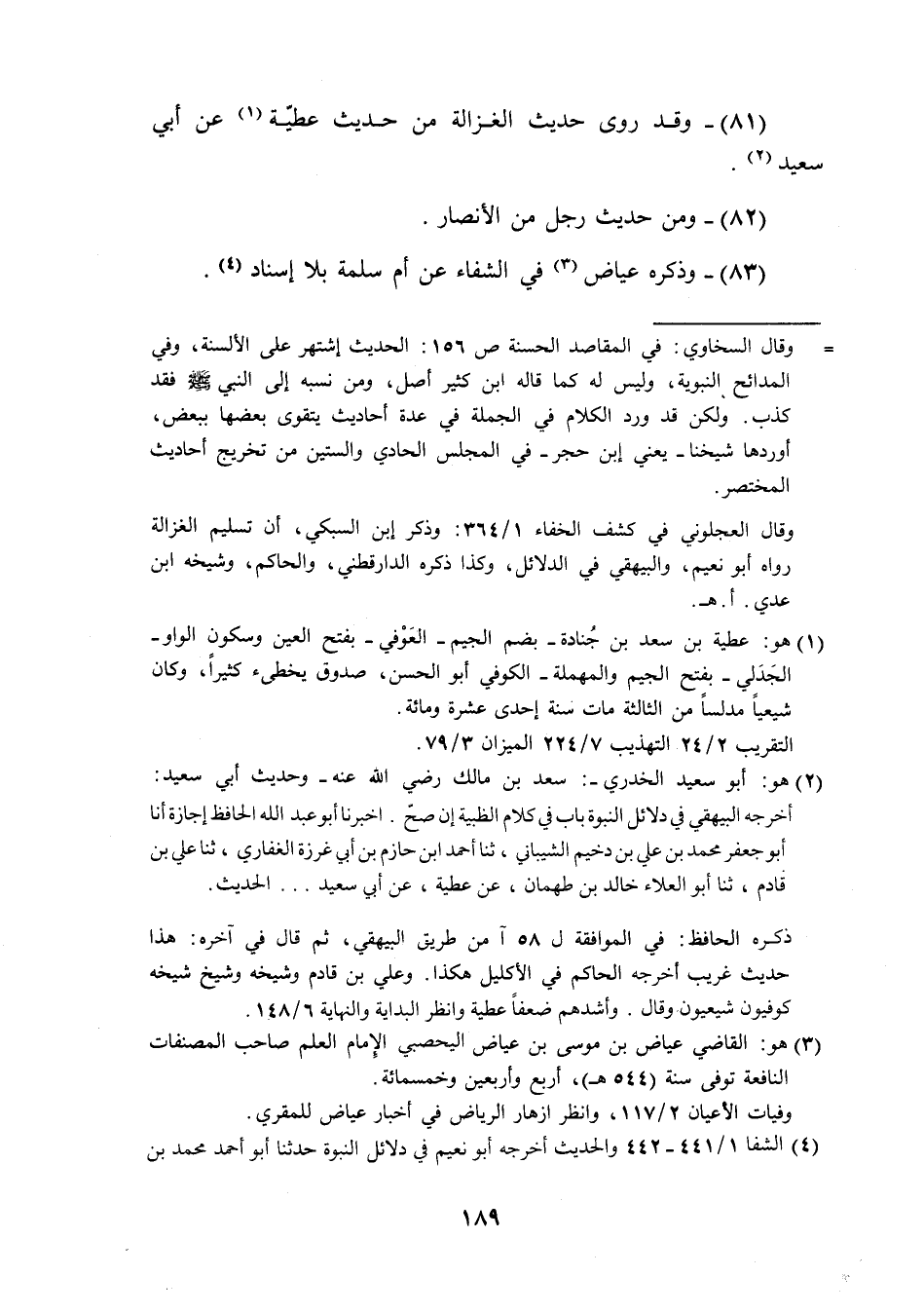 (81) وَقد رَوَى حَدِيث الغزالة من حَدِيث عطيه عَن ابي سعيد