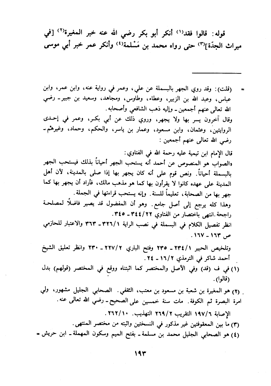 قَوْله قَالُوا فقد أنكر أَبُو بكر رَضِيَ اللَّهُ عَنْه خبر الْمُغيرَة فِي مِيرَاث الْجدّة حَتَّى رَوَاهُ مُحَمَّد بن مسلمة وانكر عمر خبر أبي مُوسَى