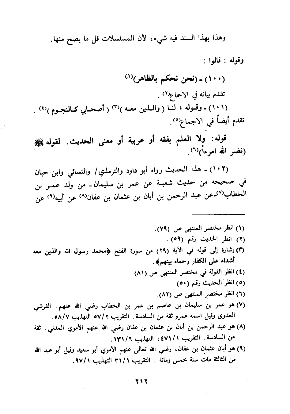 (101) وَقَوله لنا وَالَّذين مَعَه أَصْحَابِي كَالنُّجُومِ تقدم ايضا فِي الاجماع