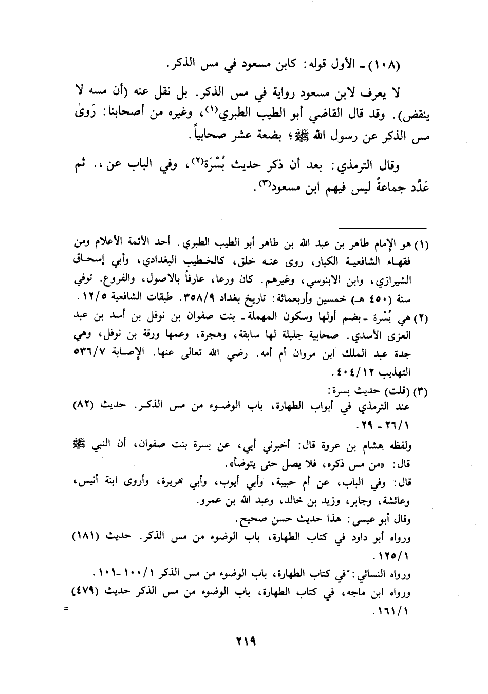 (108) الأول قَوْله كَابْن مَسْعُود فِي مس الذّكر