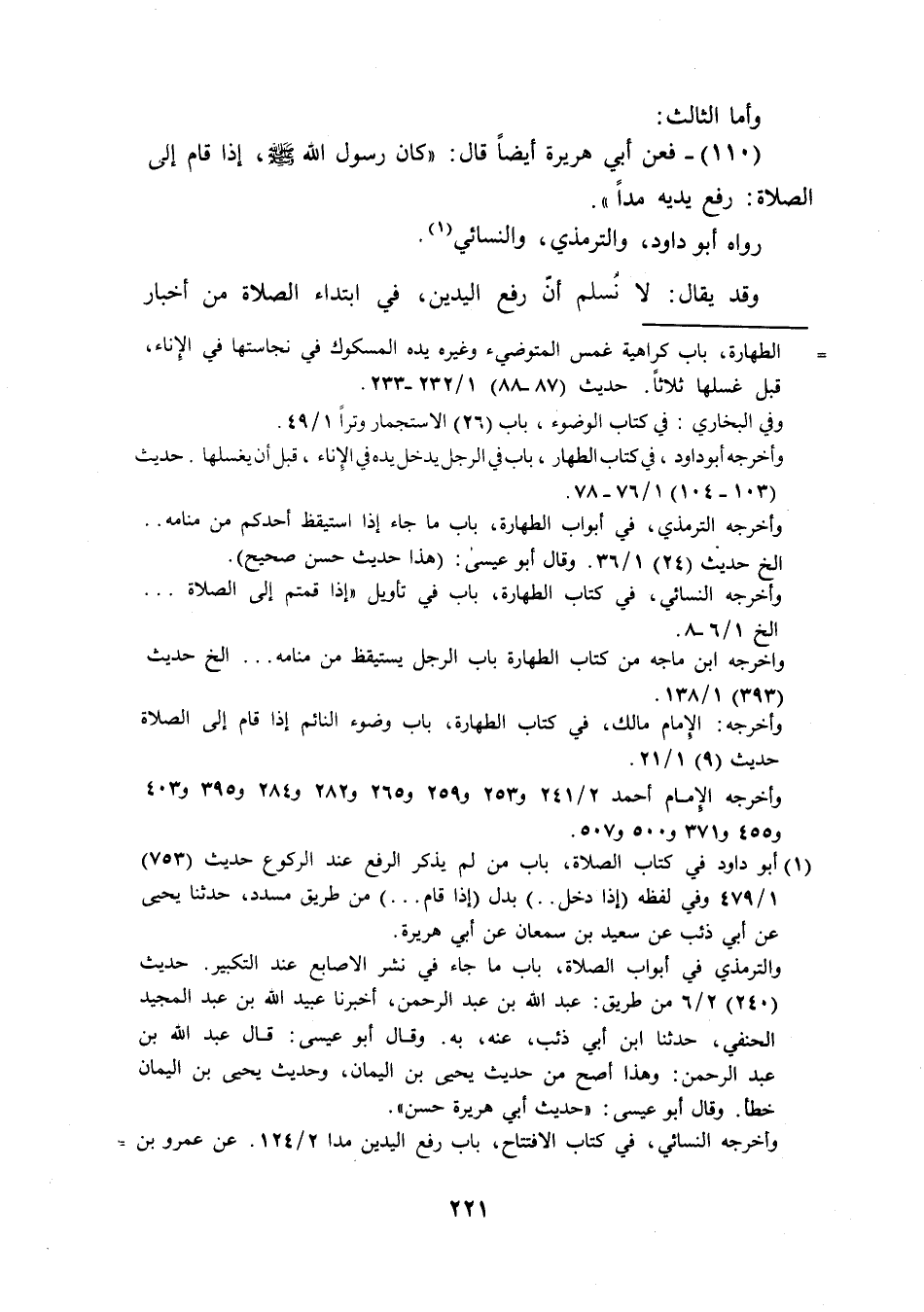 (110) فَعَن أبي هُرَيْرَة أَيْضا قَالَ كَانَ رَسُول الله صَلَّى اللَّهُ عَلَيْهِ وَسَلَّم َ إِذا قَامَ إِلَى الصَّلَاة رفع يَدَيْهِ مدا رَوَاهُ ابو دَاوُد وَالتِّرْمِذِيّ وَالنَّسَائِيّ