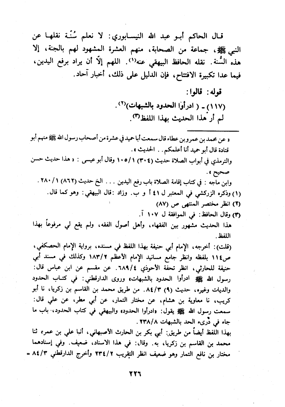 (117) ادرأوا الْحُدُود بِالشُّبُهَاتِ لم أر هَذَا الحَدِيث بِهَذَا اللَّفْظ