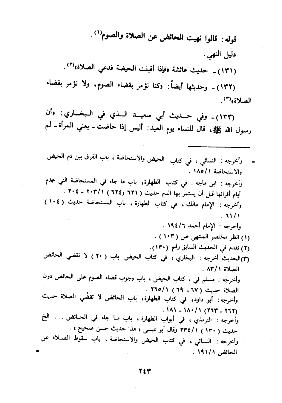 (132) وحديثها أَيْضا كُنَّا نؤمر بِقَضَاء الصَّوْم وَلَا نؤمر بِقَضَاء الصَّلَاة