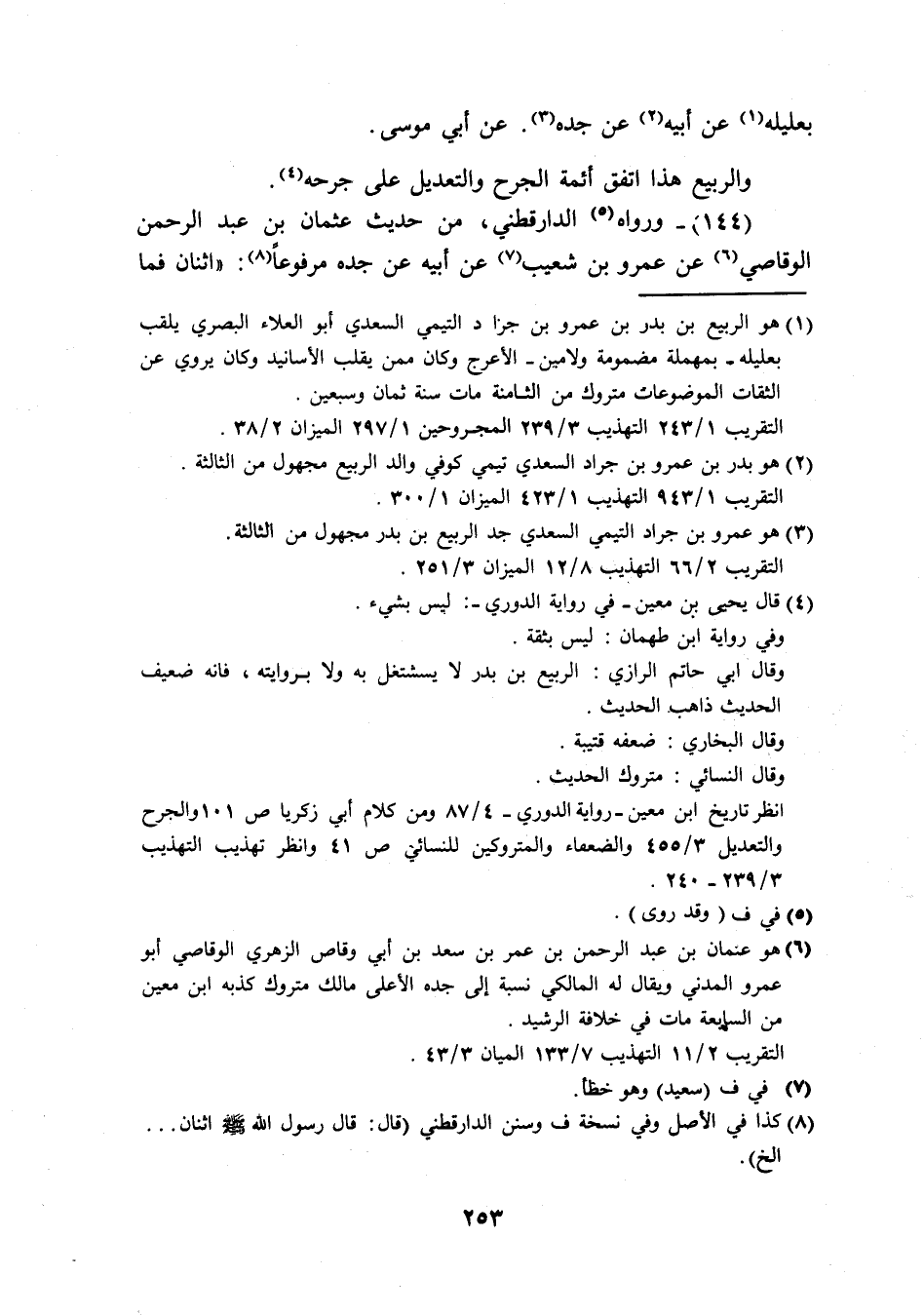 (144) وَرَوَاهُ الدَّارَقُطْنِيّ من حَدِيث عُثْمَان بن عبد الرَّحْمَن الوقاصي عَن عَمْرو بن شُعَيْب عَن ابيه عَن جده مَرْفُوعا اثْنَان فَمَا