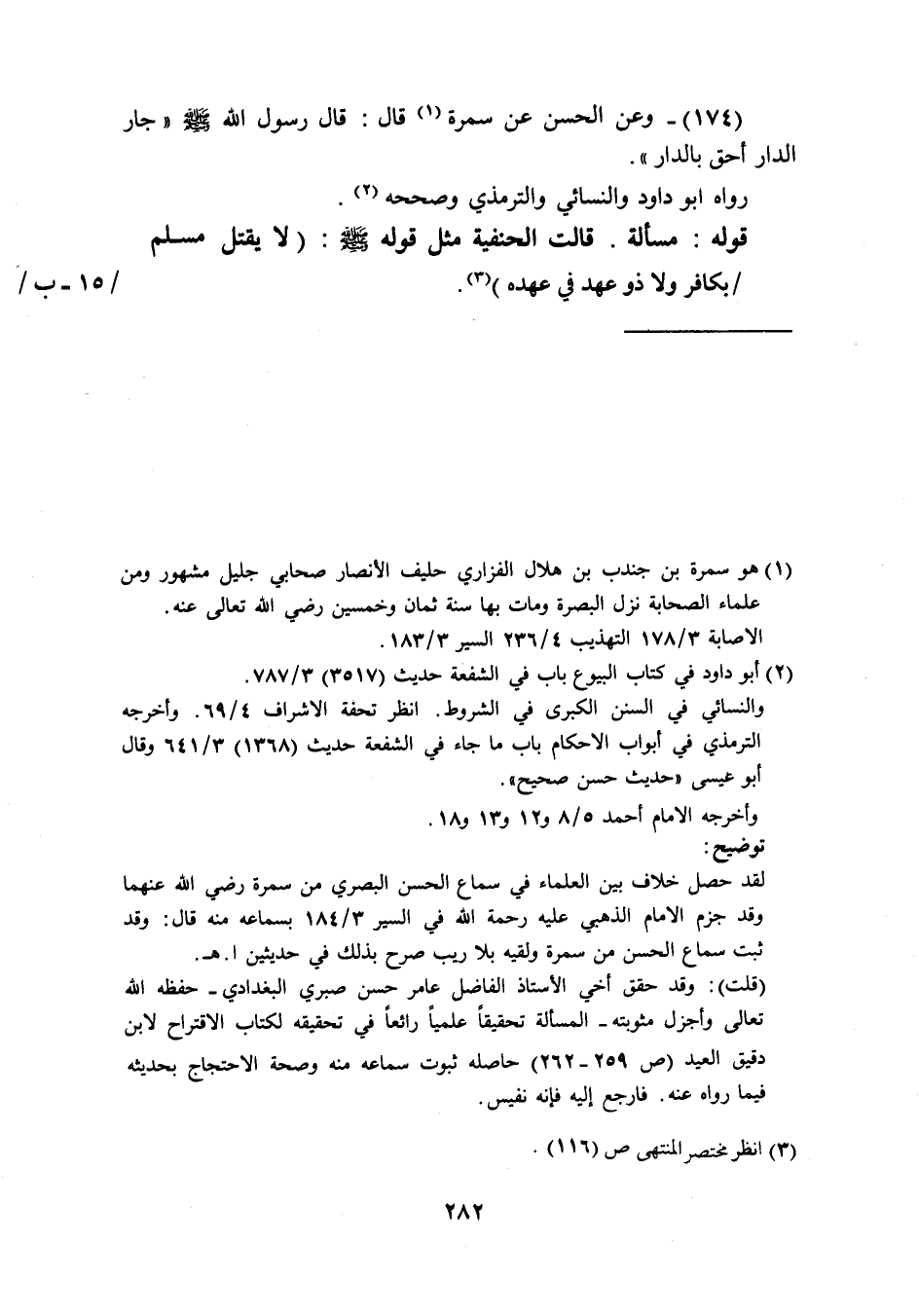 (174) وَعَن الْحسن عَن سَمُرَة قَالَ قَالَ رَسُول الله صَلَّى اللَّهُ عَلَيْهِ وَسَلَّم َ جَار الدَّار أَحَق بِالدَّار