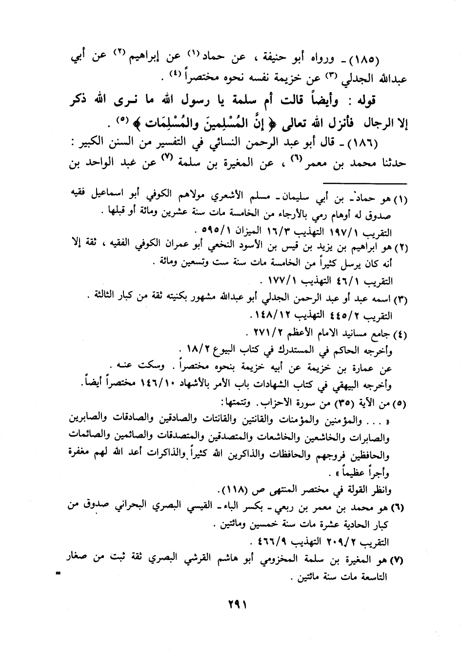(185) وَرَوَاهُ أَبُو حنيفَة عَن حَمَّاد عَن إِبْرَاهِيم عَن أبي عبد الله الجدلي عَن خُزَيْمَة نَفسه نَحوه مُخْتَصرا