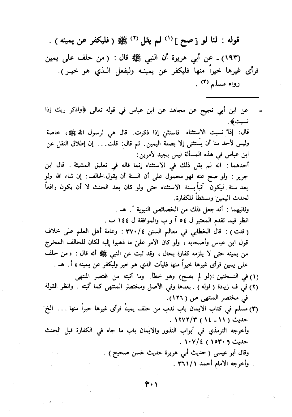 (193) عَن أبي هُرَيْرَة أَن النَّبِي صَلَّى اللَّهُ عَلَيْهِ وَسَلَّم َ قَالَ من حلف عَلَى يَمِين فَرَأَى غَيرهَا خيرا مِنْهَا فليكفر عَن يَمِينه وليفعل الَّذِي هُوَ خير رَوَاهُ مُسلم