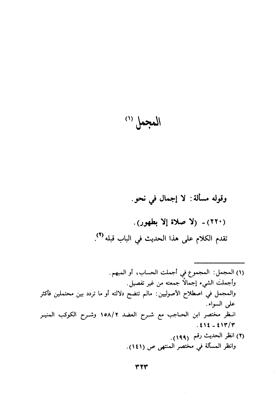 وَقَوله مَسْأَلَة لَا إِجْمَال فِي نَحْو