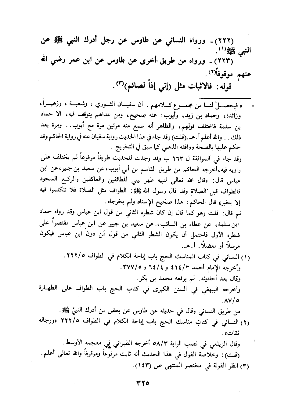 (222) وَرَوَاهُ النَّسَائِيّ عَن طَاوس عَن رجل أدْرك النَّبِي صَلَّى اللَّهُ عَلَيْهِ وَسَلَّم َ عَن النَّبِي صَلَّى اللَّهُ عَلَيْهِ وَسَلَّم َ
