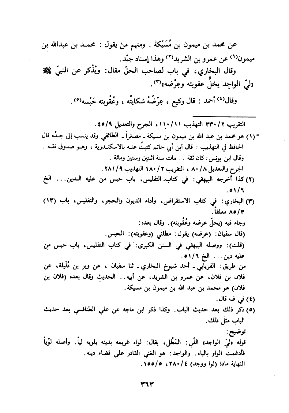 وَقَالَ البُخَارِيّ فِي بَاب لصَاحب الْحق مقَال وَيذكر عَن النَّبِي صَلَّى اللَّهُ عَلَيْهِ وَسَلَّم َ لي الْوَاجِد يخل عُقُوبَته وَعرضه