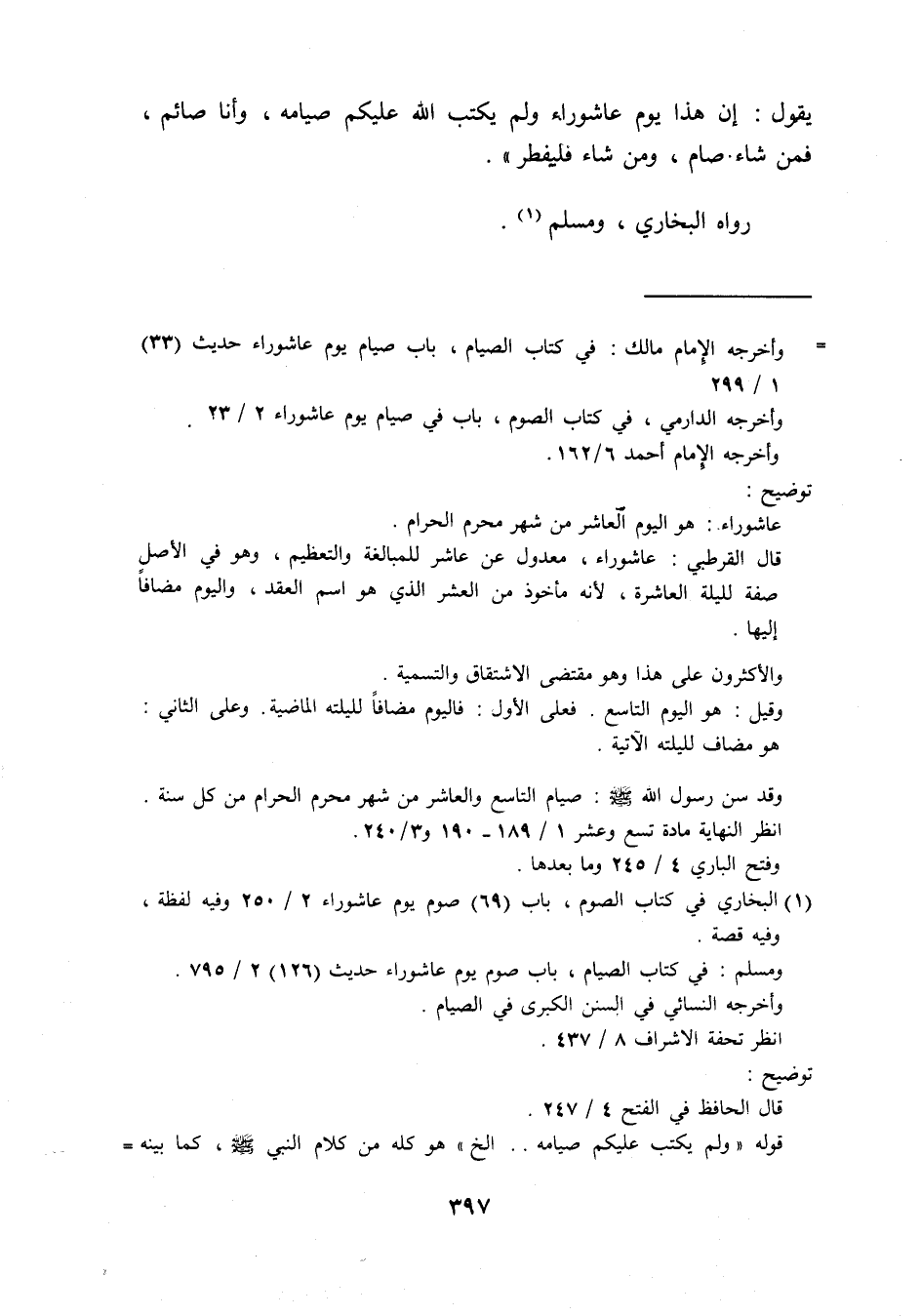 يَقُول إِن هَذَا يَوْم عاشورا وَلم يكْتب الله عَلَيْكُم صِيَامه وَأَنا صَائِم فَمن شَاءَ صَامَ وَمن شَاءَ فليفطر رَوَاهُ البُخَارِيّ وَمُسلم