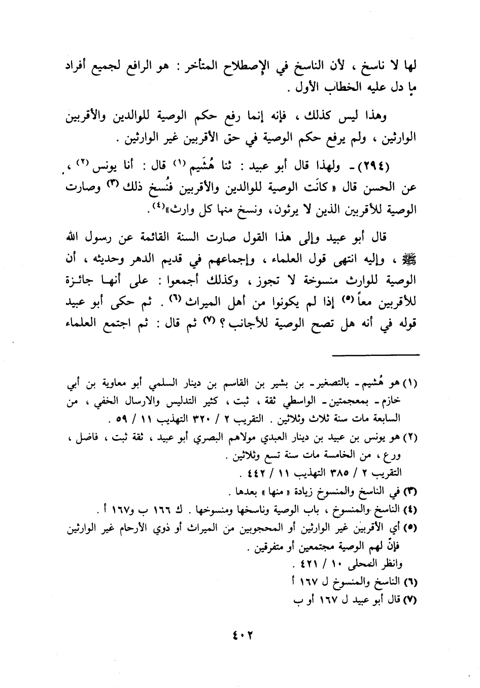 294 - وَلِهَذَا قَالَ أَبُو عبيد ثَنَا هشيم قَالَ أَنا يُونُس عَن الْحسن قَالَ كَانَت الْوَصِيَّة للْوَالِدين والاقربين فنسخ ذَلِك وَصَارَت الو صية للاقربين الَّذين لَا يَرِثُونَ وَنسخ مِنْهَا كل وَارِث