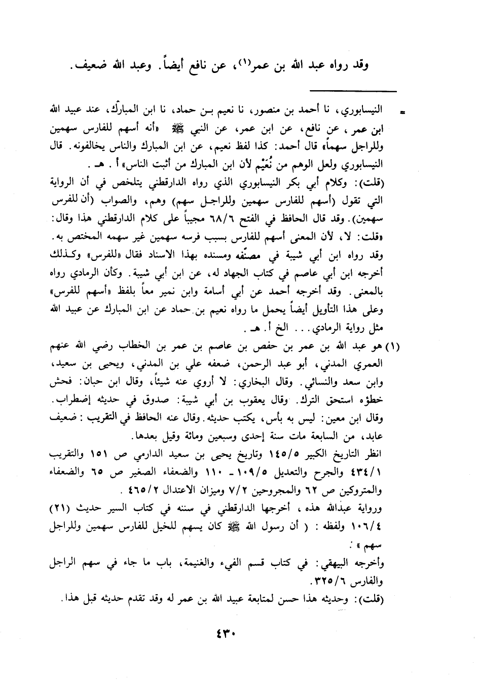 وَقد رَوَاهُ عبد الله بن عمر عَن نَافِع أَيْضا وَعبد الله ضَعِيف