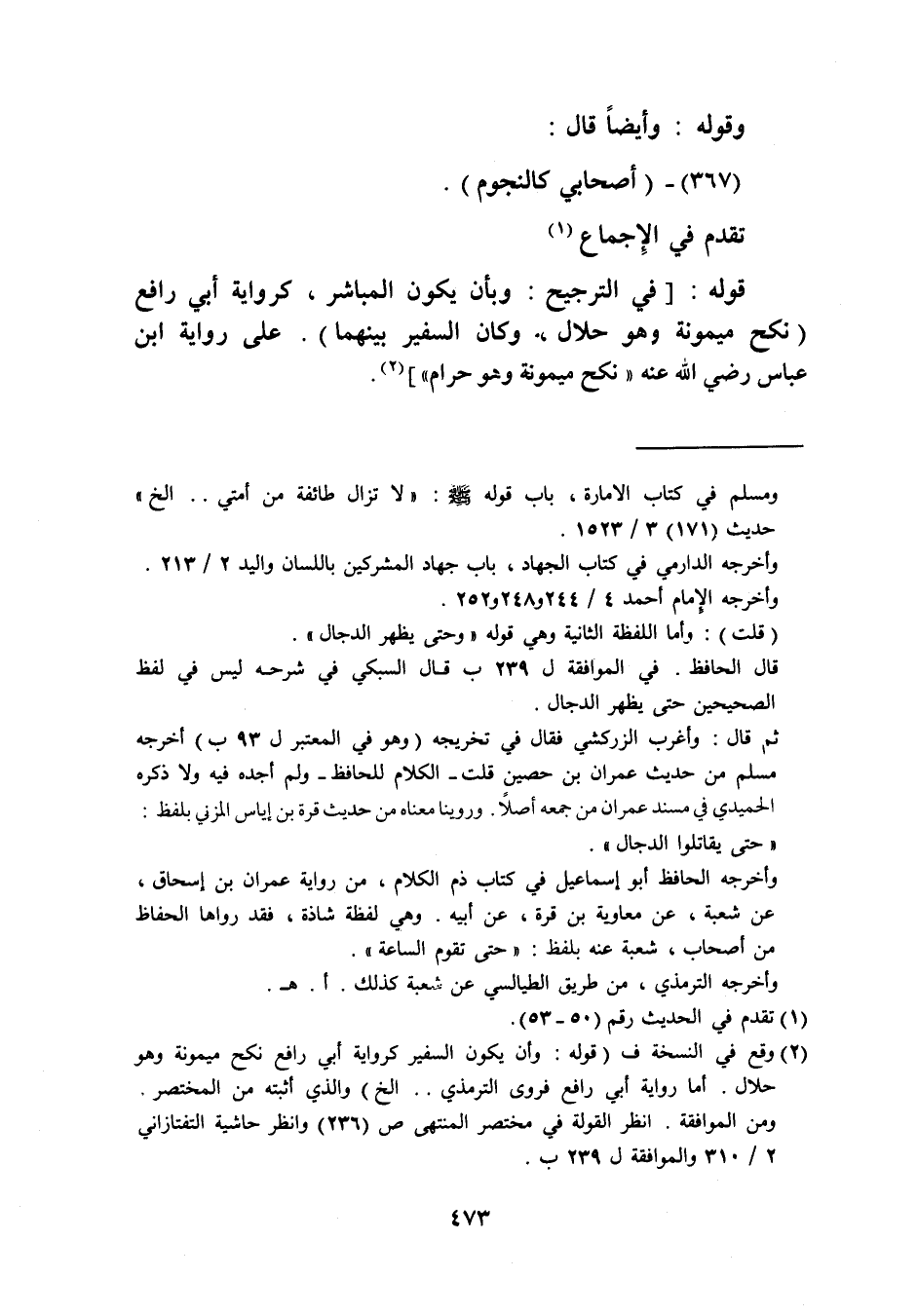 (367) أَصْحَابِي كَالنُّجُومِ تقدم فِي الاجماع