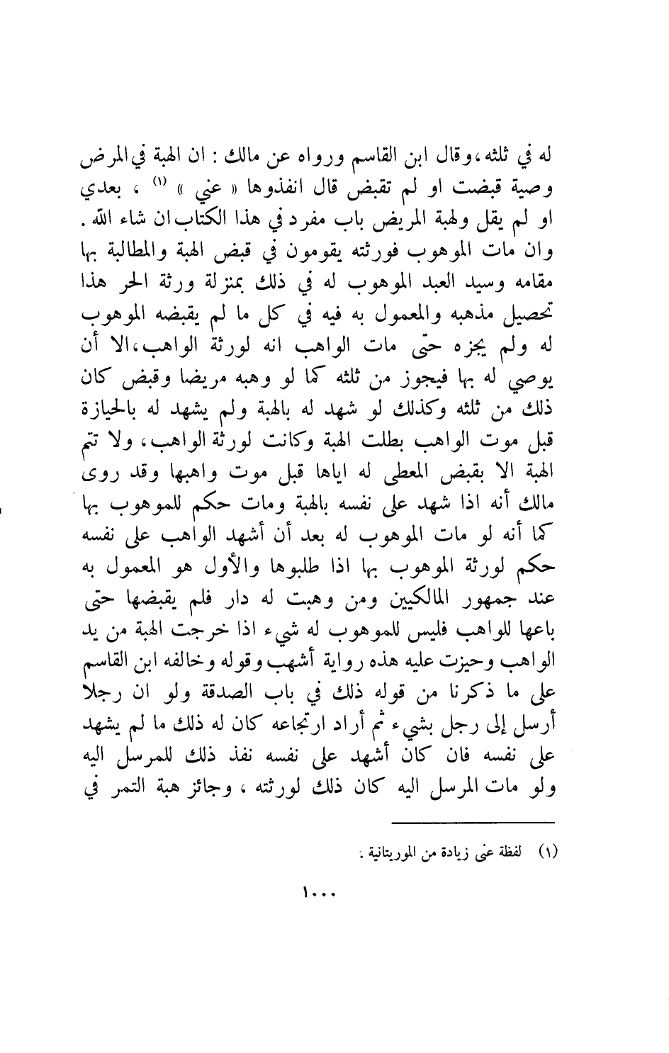 له في ثلثه وقال ابن القاسم ورواه عن مالك ان الهبه في المرض وصية قبضت او لم تقبض قال انفذوها عني بعدي او لم يقل لهبة المريض باب مفرد في هذا الكتاب ان شاء الله وان مات الموهوب فورثته يقومون في قبض الهبة والمطالبه بها مقامه وسيد العبد الموهوب له في ذلك بمنزلة ورثة الحر هذا تحصيل مذهبه والمعمول به في كل مالم يقبضه الموهوب له ولم يجزه حتى مات الواهب انه لورثة الواهب إلا ان يوصي له بها فيجوز من ثلثه كما لو وهبه مريضا وقبض كان ذلك من ثلثه وكذلك لو شهد له بالهبه ولم يشهد له بالحيازه قبل موت الواهب بطلت الهبه وكانت لورثة الواهب ولا تتم الهبه الا بقبض المعطي له اياها قبل موت واهبها وقد روى مالك انه اذا شهد على نفسه بالهبه ومات حكم للموهوب بها كما أنه لو مات الموهوب له بعد ان أشهد الواهب على نفسه حكم لورثة الموهوب بها اذا طلبوها والاول هو المعمول به عند جمهور المالكين ومن وهبت له دار فلم يقبضها حتى باعها للواهب فليس للموهوب له شيء اذا خرجت الهبه من يد الواهب وحيزت عليه هذه رواية أشهب وقوله وخالفه ابن القاسم على ما ذكرنا من قوله ذلك في باب الصدقه ولو ان رجلا أرسل الى رجل بشيء ثم أراد ارتجاعه كان له ذلك مالم يشهد على نفسه فإن كان أشهد على نفسه نفذ ذلك للمرسل اليه ولو مات المرسل اليه كان ذلك لورثته وجائز هبة التمر