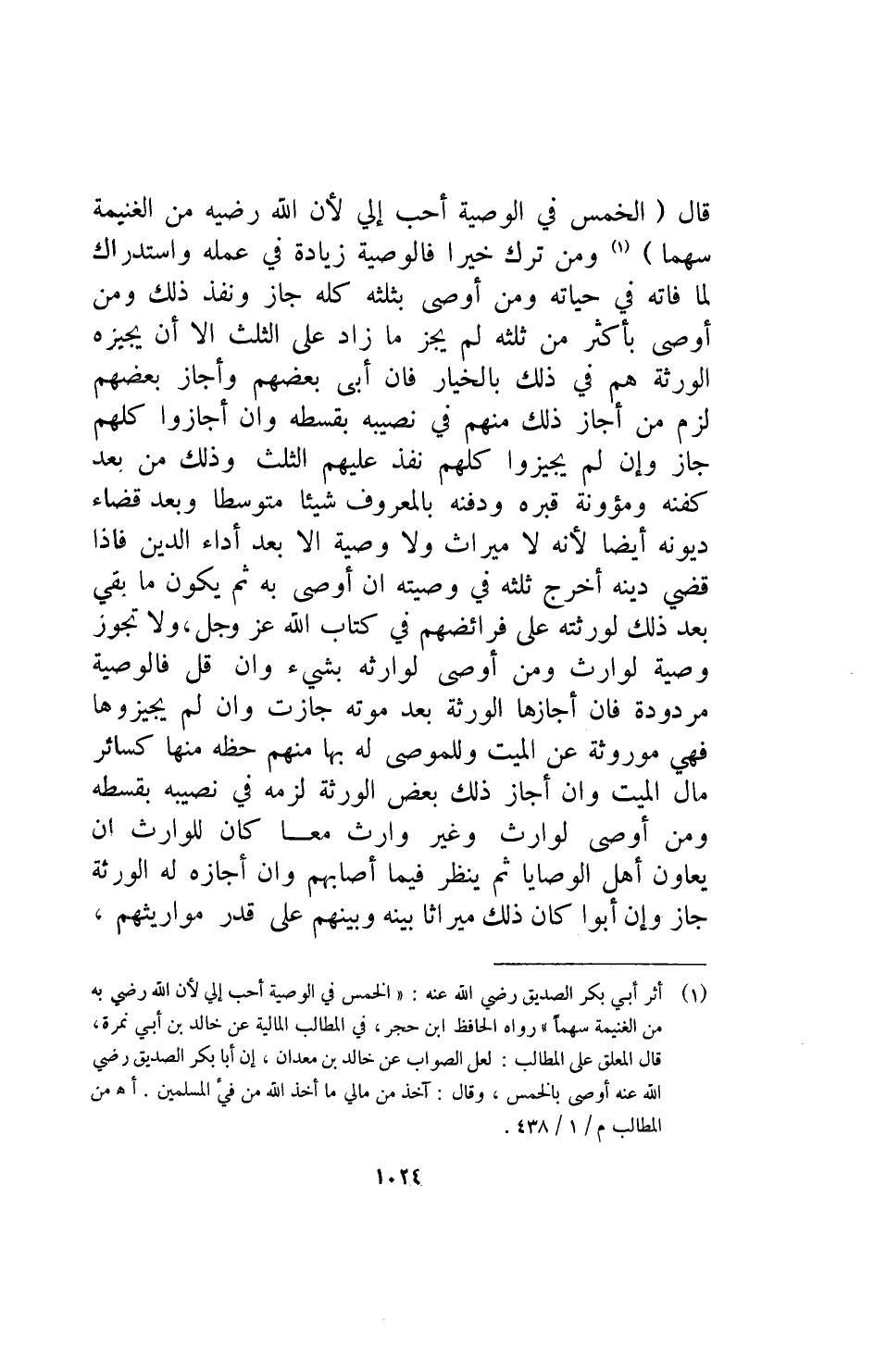 قال الخمس في الوصيه أحب الي لأن الله رضيه من الغنيمه سهما ومن ترك خيرا فالوصيه زيادة في عمله واستدراك لما فاته في حياته ومن اوصى بثلثه كله جاز ونفذ ذلك ومن اوصى بأكثر من ثلثه لم يجز ما زاد على الثلث الا ان يجيزه الورثه هم في ذلك بالخيار فإن ابى بعضهم وأجاز بعضهم لزم من اجاز ذلك منهم في نصيبه بقسطه وان أجازوا كلهم جاز وإن لم يجيزوا كلهم نفذ عليهم الثلث وذلك من بعد كفنه ومؤونة قبره ودفنه بالمعروف شيئا متوسطا وبعد قضاء ديونه أيضا لانه لاميراث ولا وصيه الا بعد أداء الدين فإذا قضي دينه أخرج ثلثه في وصيته إن اوصى به ثم يكون ما بقي بعد ذلك لورثته على فرائضهم في كتاب الله عزوجل ولا تجوز وصية لوارث ومن اوصى لوارثه بشيء وان قل فالوصيه مردوده فإن أجازها الورثه بعد موته جازت وان لم يجيزوها فهي موروثه عن الميت وللموصي له بها حظه منها كسائر مال الميت وان أجاز ذلك بعض الورثه لزمه في نصيبه بقسطه ومن اوصى لوارث وغير وارث معا كان للوارث ان يعاون أهل الوصايا ثم ينظر فيما اصابهم وان اجازه له الورثه جاز وان أبوا كان ذلك ميراثا بينه وبينهم على قدر مواريثهم